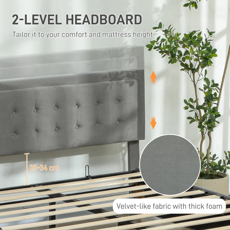 - Velvet-feel headboard adjustable to two different heights