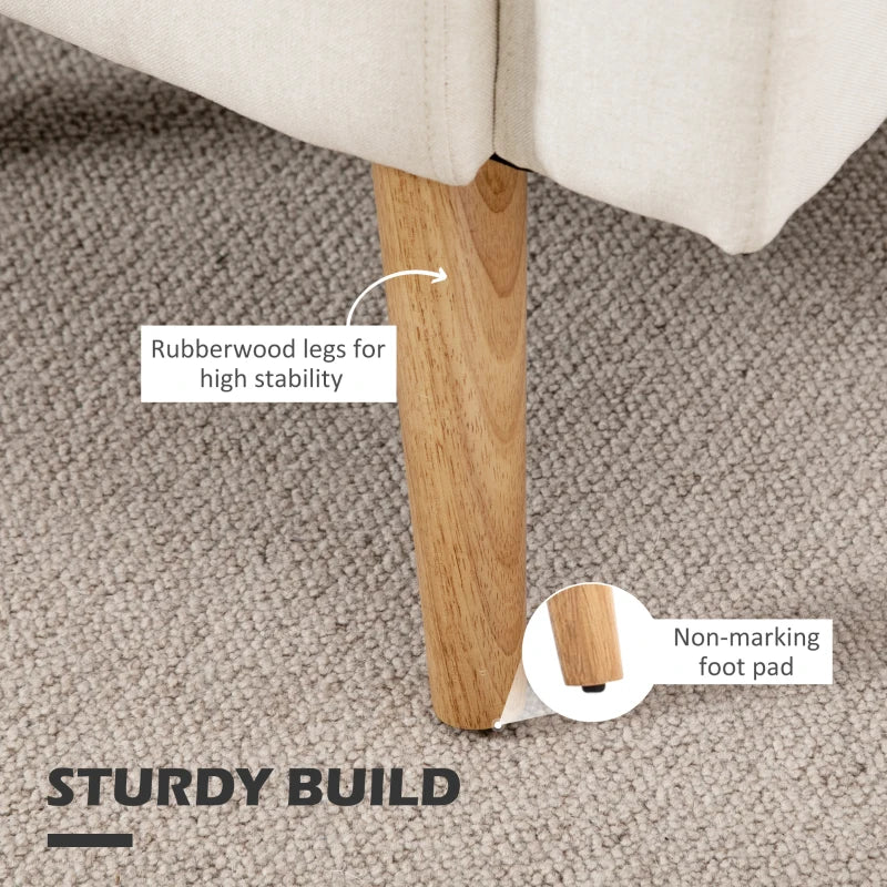 It features a solid wooden frame and legs, thick foam padding for comfort, and linen-touch fabric upholstery.