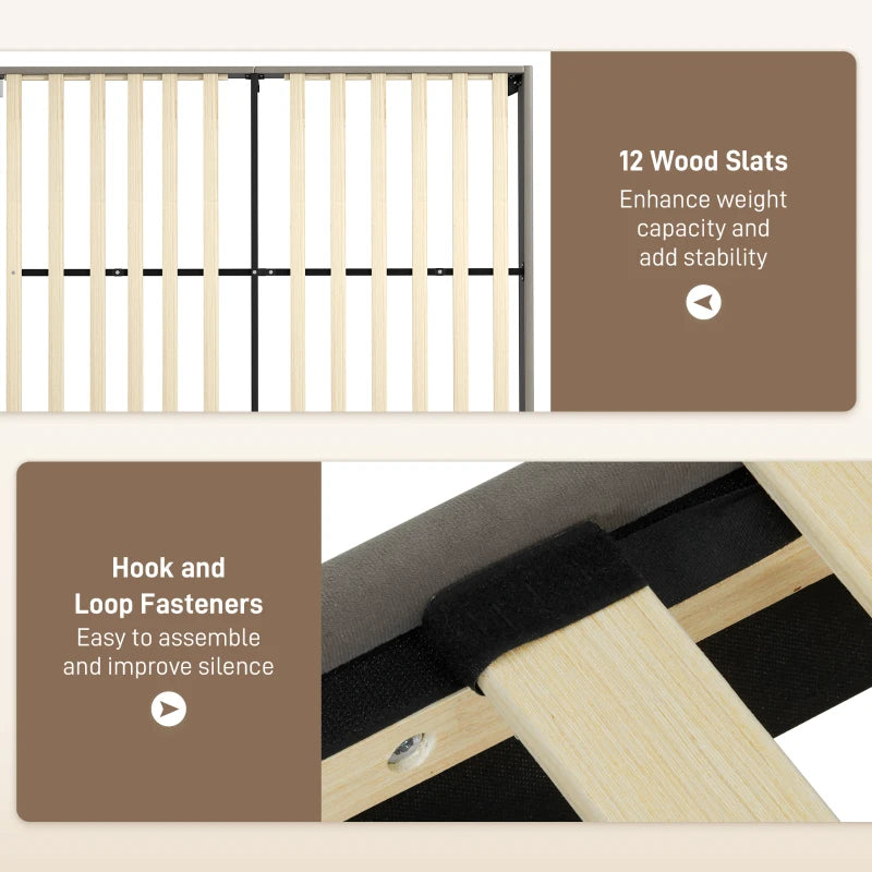 - Adjustable headboard with five levels: Position the back of the double bed frame to your preference, accommodating various mattress thicknesses.