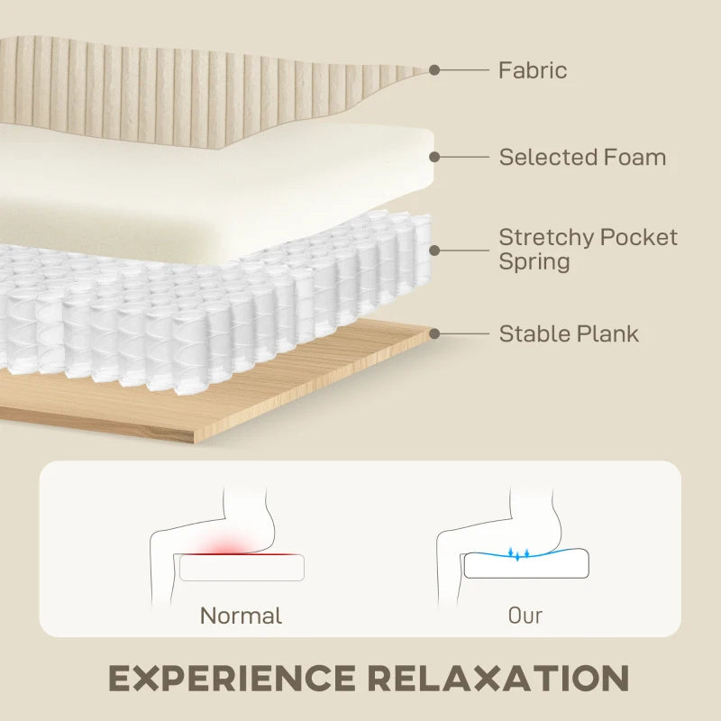 Sink into the sumptuous comfort of the HOMCOM three seater sofa, featuring a cushion with spring pack and high-density sponge for unmatched support. Wrapped in a skin-friendly corduroy that's both breathable and stylish, this fabric sofa, complete with two cosy scatter cushions, is a great addition to any living room, blending comfort with a touch of elegance.