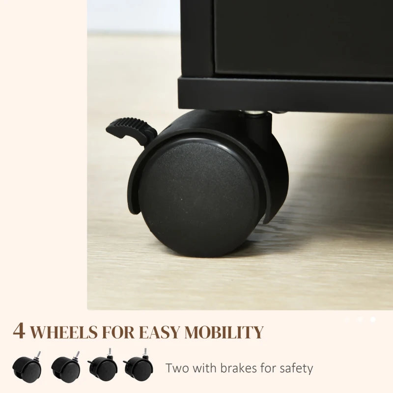 - Four wheels: As a mobile office cabinet, it can be easily relocated, even when loaded. Two brakes ensure it remains stationary when needed.