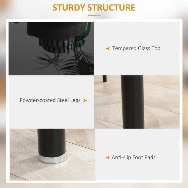 - Sturdy construction: The dining set boasts metal frames and a glass tabletop for a modern look.