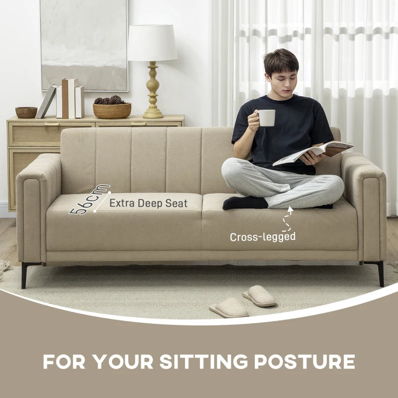 Sink into plush comfort, all day everyday, with this HOMCOM three-seater sofa. The 28cm seat and 18cm padded back is soft, wrapped in smooth linen-look upholstery. Holding up to three people, there's plenty of room to relax by yourself and with company. Complete with steel legs for strong support.