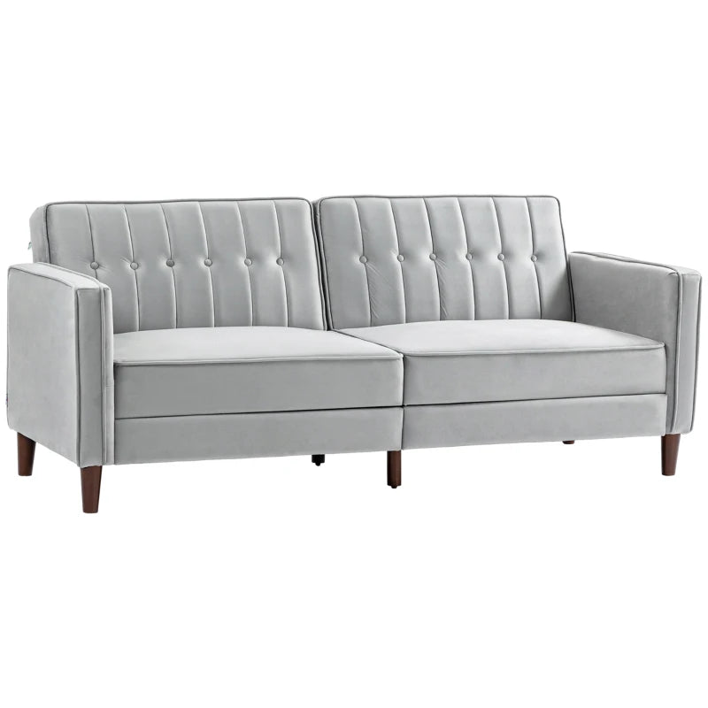 Live the luxe life, day and night, with this click clack three seater sofa for living room from HOMCOM. Three-seater size is generous as you sit in the day and sleep at night, giving you a fantastic experience every time. Filled with thick sponge and comes with two thick bottom cushions to sink in comfortably. Two backs recline individually to three different positions: greater control of your comfort. Complete with wooden and metal legs for full support.