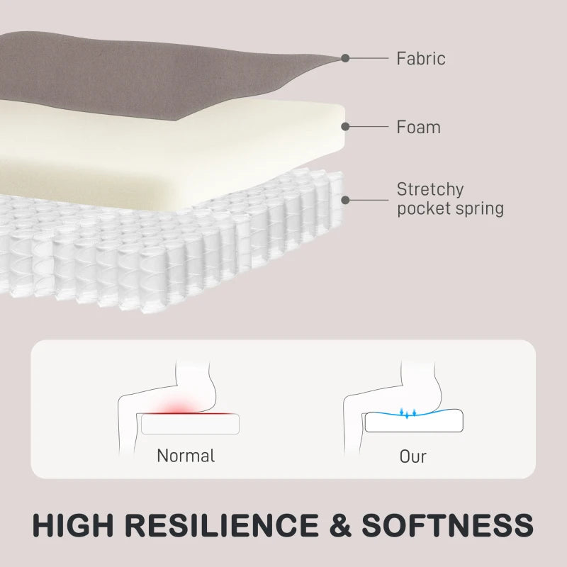 - Pocket springs, S-springs and elastic bands work together to deliver superior support