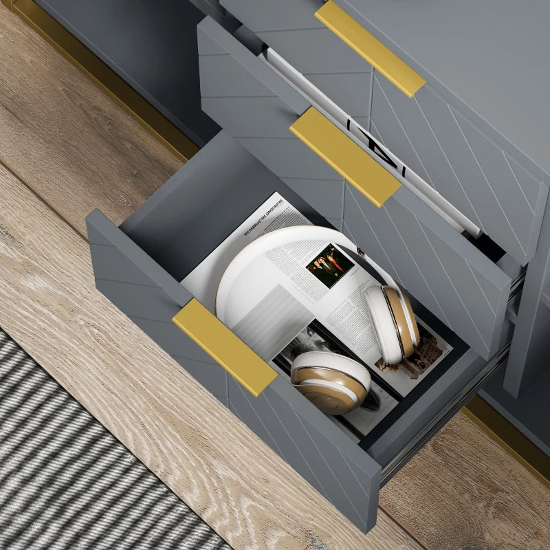 - Contemporary elegance: This stylish and streamlined sideboard storage cabinet features a luxurious gold tone base and matching hardware accents, making it a perfect addition to your living room, kitchen, or dining area.