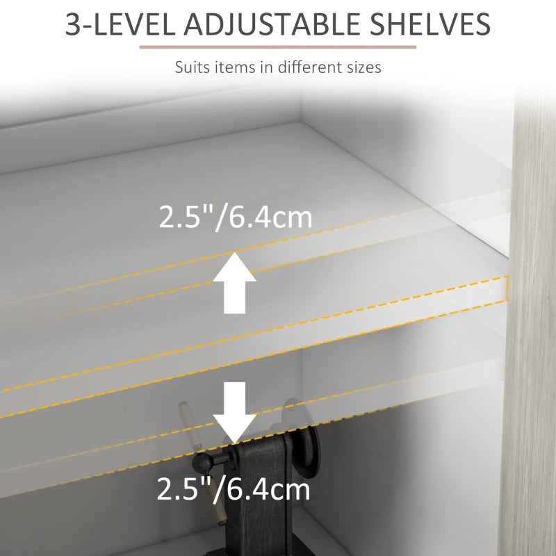 - Four storage sections: The buffet features four doors that open to reveal two compartments, divided by a central shelf, offering ample space for kitchen items, boxes, and more.
