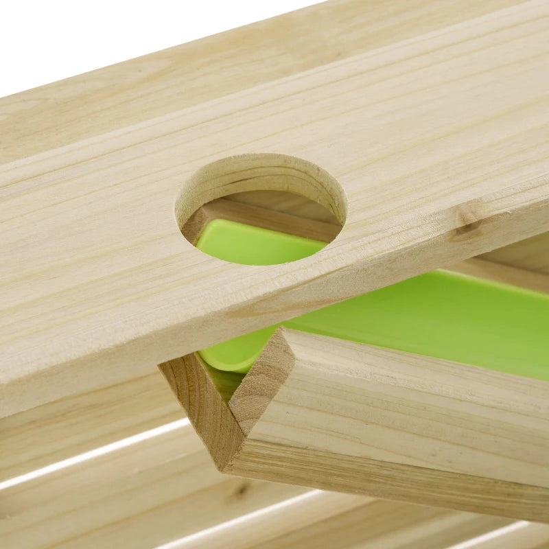 Transform your outdoor space into a mini beach, thanks to this Outsunny water-running playset. With two sections for sand and water children will enjoy creating waterfalls with the funnel, and sandcastles with the spatula and spoon. Overall, there are 18 toy accessories of the wooden sandpit, giving children different activates each time. It's a fun way to encourage problem-solving and creativity, allowing children to enter a magical world of their own.