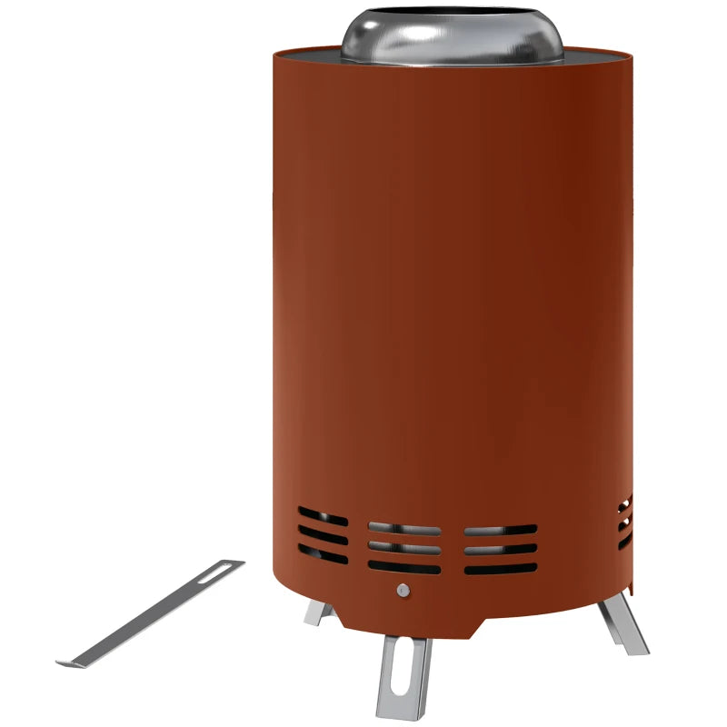 Chic, modern, and incredibly useful: introduce yourself to this contemporary outdoor fire pit. Constructed from powder-coated stainless steel for durability and high heat resistance, it features a sleek cylindrical design. It utilizes a smokeless secondary combustion system: oxygen enters from the bottom and circulates between the walls for a strong, efficient burn, while completely converting fuel to ash for a smoke-free experience - enjoy warmth like never before!