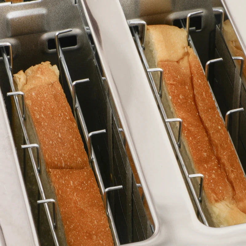 - Four-slice toaster with seven browning settings: Toast multiple slices simultaneously with adjustable browning levels. Also includes defrost, reheat, and cancel functions.