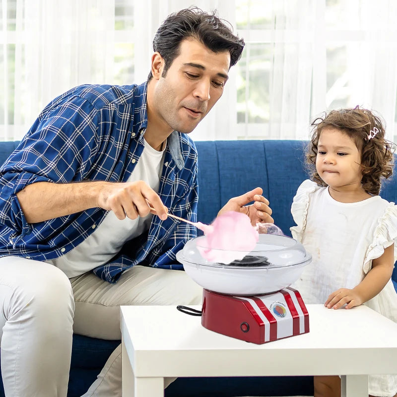 Rekindle sweet childhood memories with this cotton candy machine. Simply add a spoonful of pure granulated sugar, and within 3 to 5 minutes, you'll be collecting cotton candy on sticks as the center spool spins. Made from food-grade materials and featuring non-slip feet, this machine is safe for both adults and children. It's an ideal addition for parties or when you're craving something sweet at home!