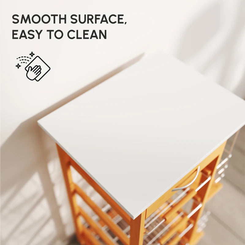 - STABILITY: Constructed with a metal frame and particleboard, this kitchen cart is easy to clean and suitable for daily use.
