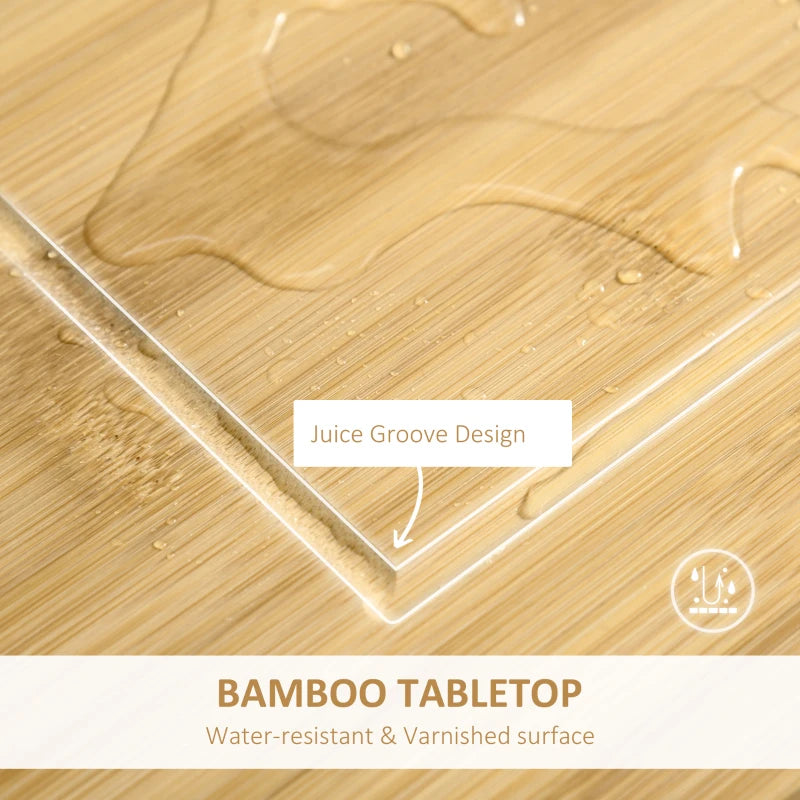 - Durable bamboo tabletop and MDF panels ensure stability and ease of cleaning.