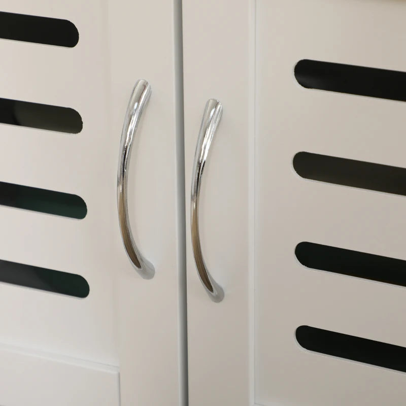 - LOUVERED DOOR: The bottom storage cabinet is fitted with a louvered door, keeping contents hidden while allowing for ventilation.