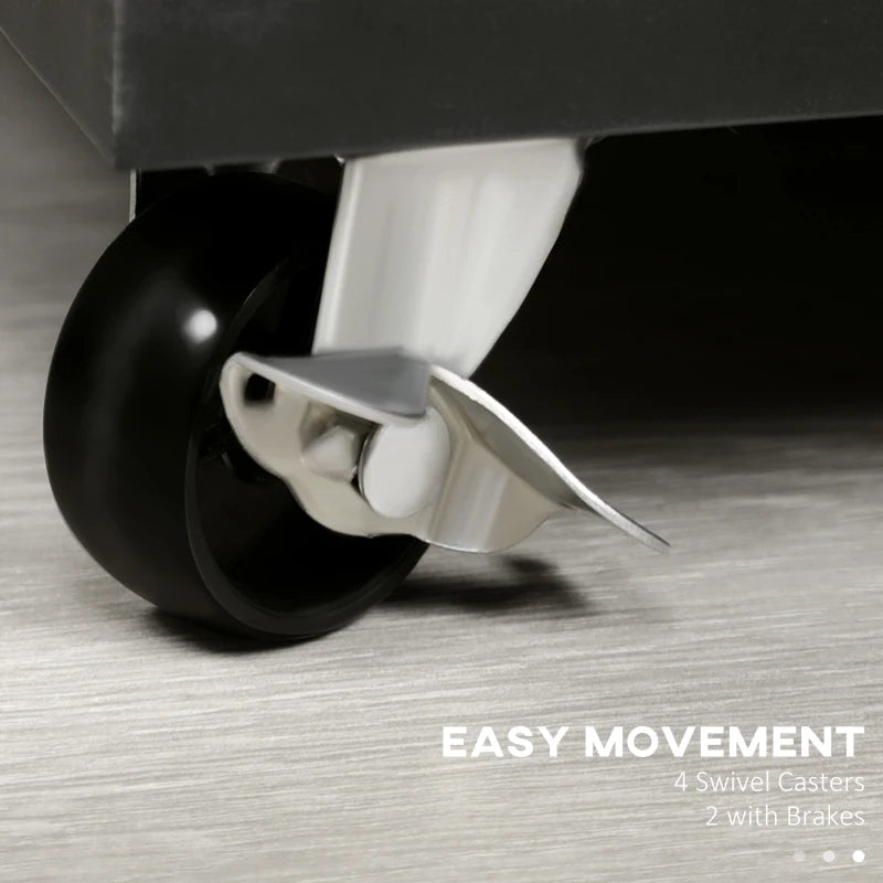 - Equipped with wheels for easy movement, with two locking wheels to keep the cabinet in place.