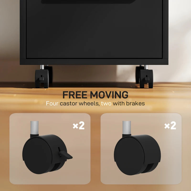 Enhance your home office organization with this three-drawer filing cabinet. The central locking system ensures that documents are kept safe and secure by locking all drawers simultaneously. With three drawers, it provides ample storage for files, stationery, and more, making it a versatile storage solution for your home office, study, bedroom, or living room.