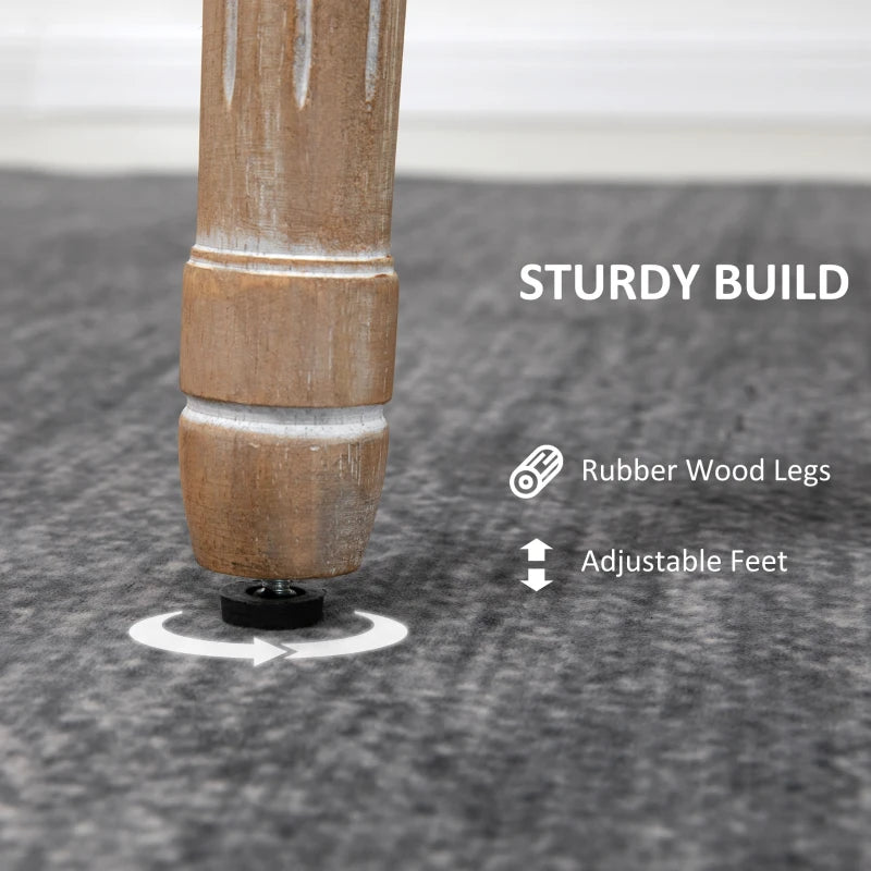 Experience French-inspired sophistication in your home with this set of two dining chairs. Crafted from durable wood, the oval backs and fluted legs enhance their aesthetic appeal. The thick sponge padding on the back and seat ensures comfort, all wrapped in smooth linen-look fabric. They also feature adjustable feet for added stability.