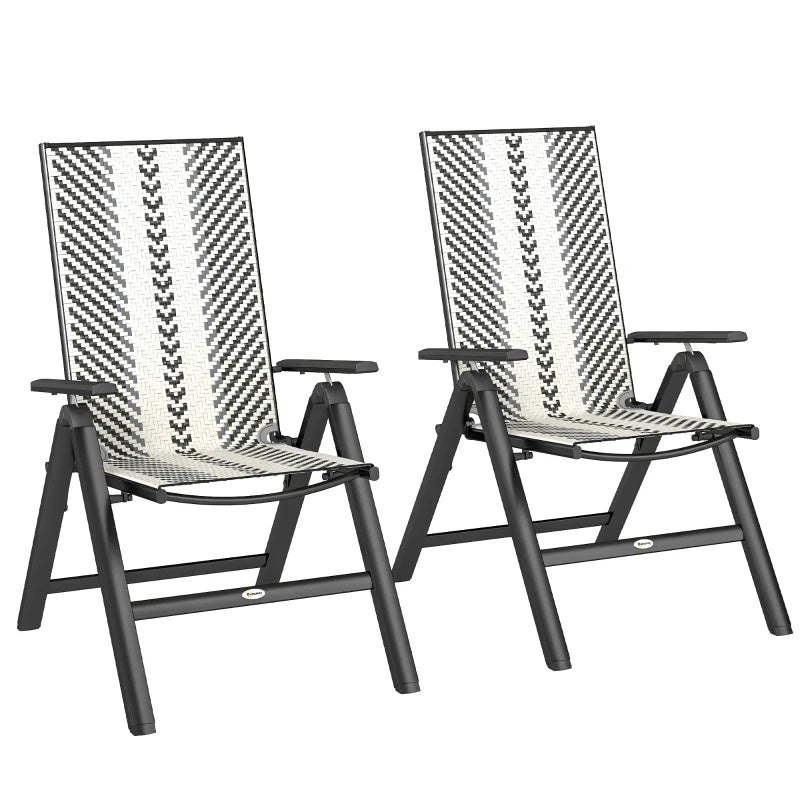 Unfold and unwind with these two folding garden chairs. Each chair features five adjustable back positions, allowing you to recline to your desired angle. The hand-woven plastic wicker seats offer a chic and attractive rattan appearance. Their foldable design makes them easy to store and convenient to use whenever you need them.