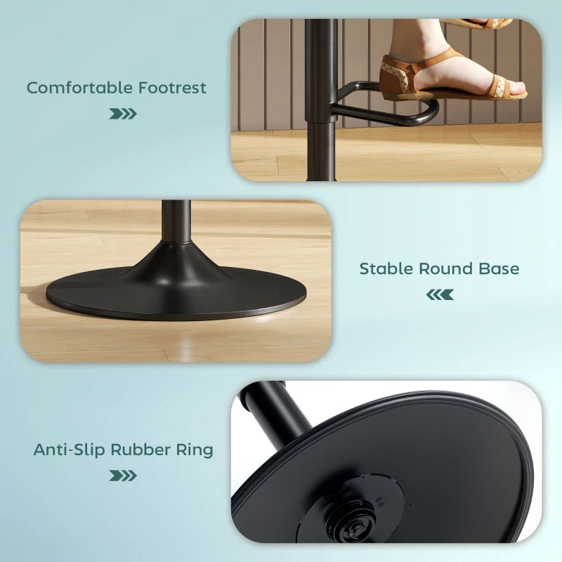- Swiveling steel frame: Made from powder-coated metal for enhanced durability, this sturdy stool set features a 360° swivel that moves with you.