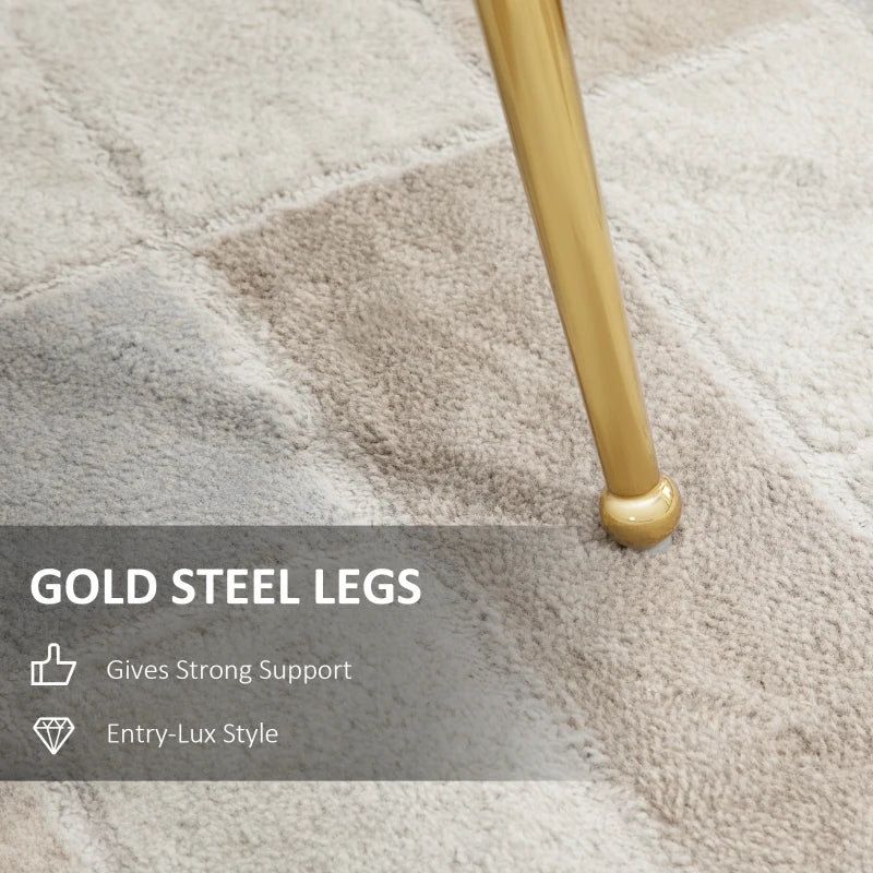 - Shell-shaped back works beautifully with velvet-feel fabric and gold tone legs