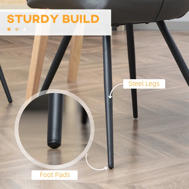 This dining room chair set provides a comfortable and supportive place to enjoy meals. The steel base offers ample support, while the padded seats and tall backs ensure comfort. Wrapped in faux leather upholstery for a stylish look.