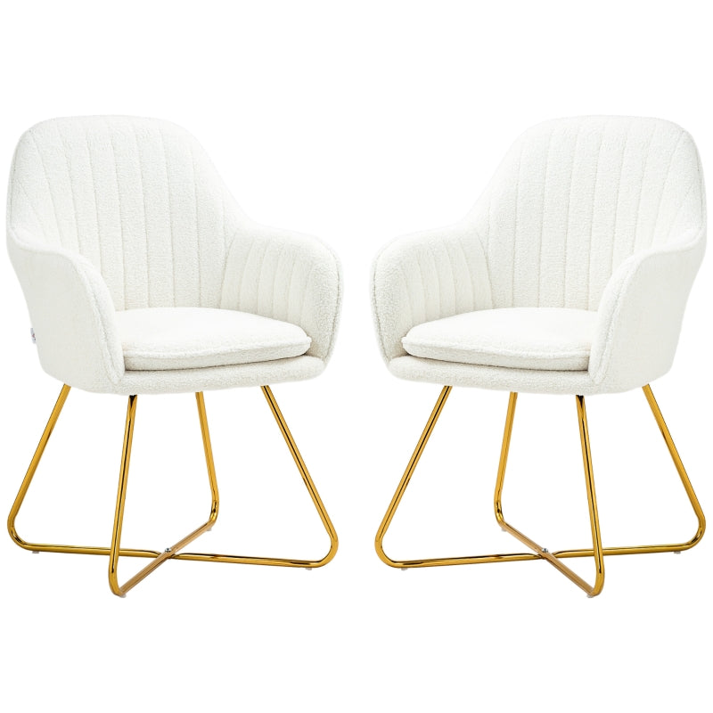 Double the plush comfort with this HOMCOM dining chair set. Sponge seats for comfort, wrapped in sherpa fleece upholstery for a soft finish. Each works perfectly as a reading chair, vanity chair or lounge chair - they are versatile! Complete with a metal base for strong support.