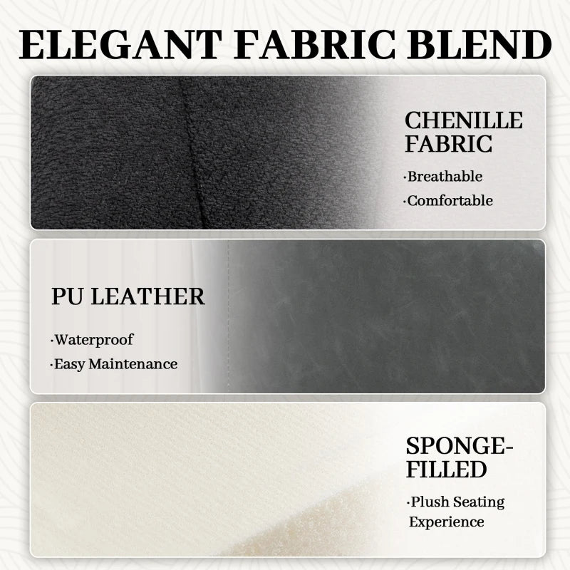 A soft stylish spot for wherever you want in the home, with this HOMCOM dining chair. Take it beyond the traditional dining room and use in the bedroom, hallway, lounge or similar. Thanks to the inner filling it's comfortableand thanks to the tall back and arms, your body will be supportive. The seat is wrapped in soft chenille, complete with a faux leather back for a touch of style.