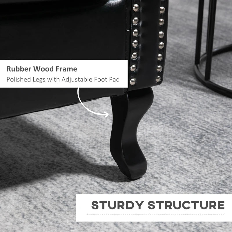Inject a vintage feel into your home with this HOMCOM Chesterfield-style wingback chair. The wooden frame means a strong, supportive structure, with all-over padding for prolonged comfort. The high back and arms support you. Complete with nailhead trim all over for added style.