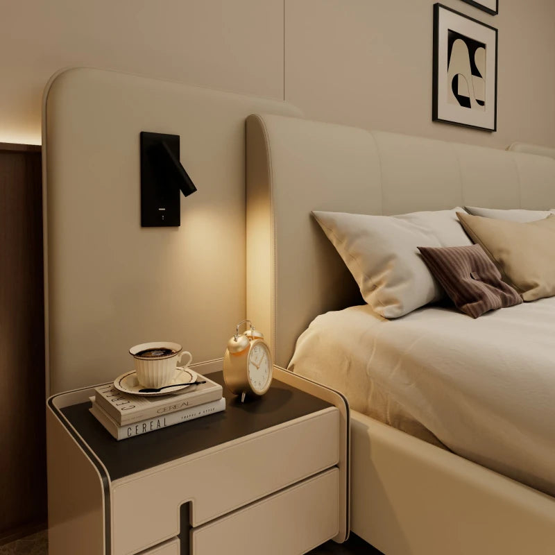 - Tech-Enhanced Upholstered Bed: This 4ft6 double bed (135L x 190W cm) is equipped with a handy charging port and integrated lighting, allowing you to charge your devices and enjoy soft lighting without having to leave your bed.