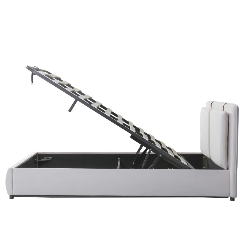 - Dual Purpose Design: This upholstered bed comes with a hydraulic storage feature, allowing easy access to a spacious hidden area beneath the bed—perfect for stowing away bedding, seasonal items, or miscellaneous clutter while maximizing space.