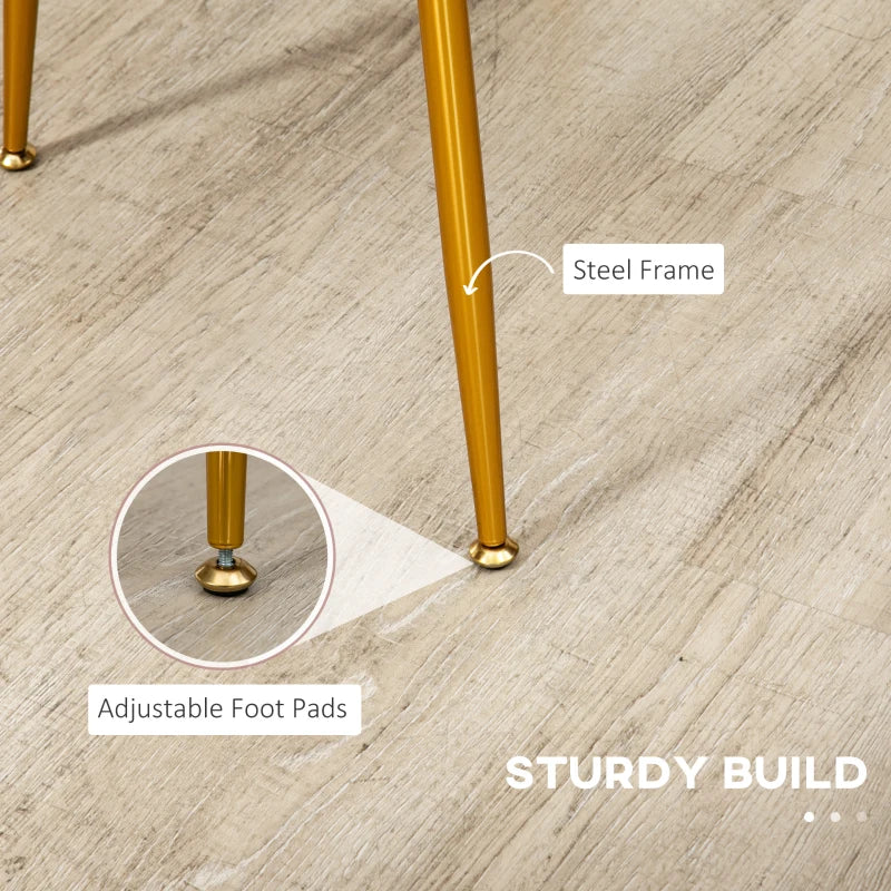 Transform your home effortlessly with these two dining chairs. The velvet-like upholstery offers a touch of luxury while being gentle on the skin. The padded seats ensure comfort, and the curved design of the back and seat provides better support for your body shape. Sturdy powder-coated steel legs offer reliable support, complete with convenient adjustable feet. This set includes two chairs.