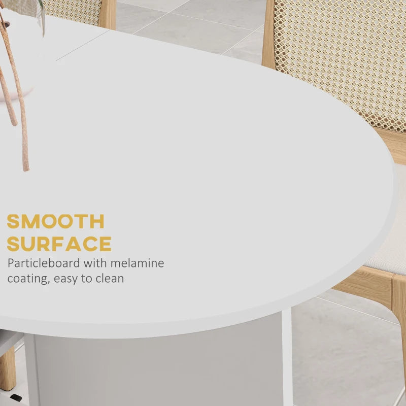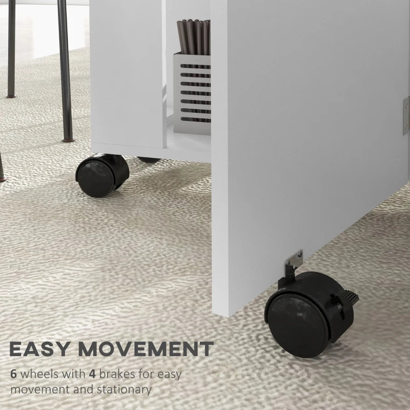 Expand your dining area as needed with this drop leaf table. It features two liftable sides, making it spacious enough for four people, yet compact with the sides down, making it perfect for smaller homes and dining spaces. The two shelves provide storage for tableware, cutlery, and more. This extendable dining table is equipped with six wheels for easy mobility, along with four brakes for stability.
