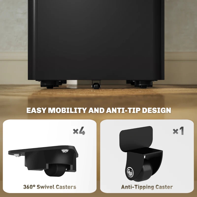 - Easy mobility & stability: Move your lockable filing cabinet effortlessly with four 360° swivel casters. An additional auxiliary caster enhances stability and prevents tipping.