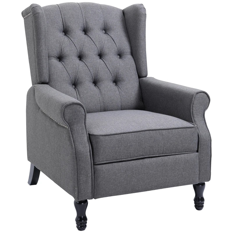 Take your relaxation to the next level with this HOMCOM recliner armchair. A strong, supportive wooden frame, it's fitted with thick sponge for comfort. The back reclines to 150° - lie back and relax to a position you want. Tufted on the back for a vintage and traditional look, bringing character into your space. Its finished with linen upholstery for easy maintenance and four solid wood legs to keep it stable on the floor.