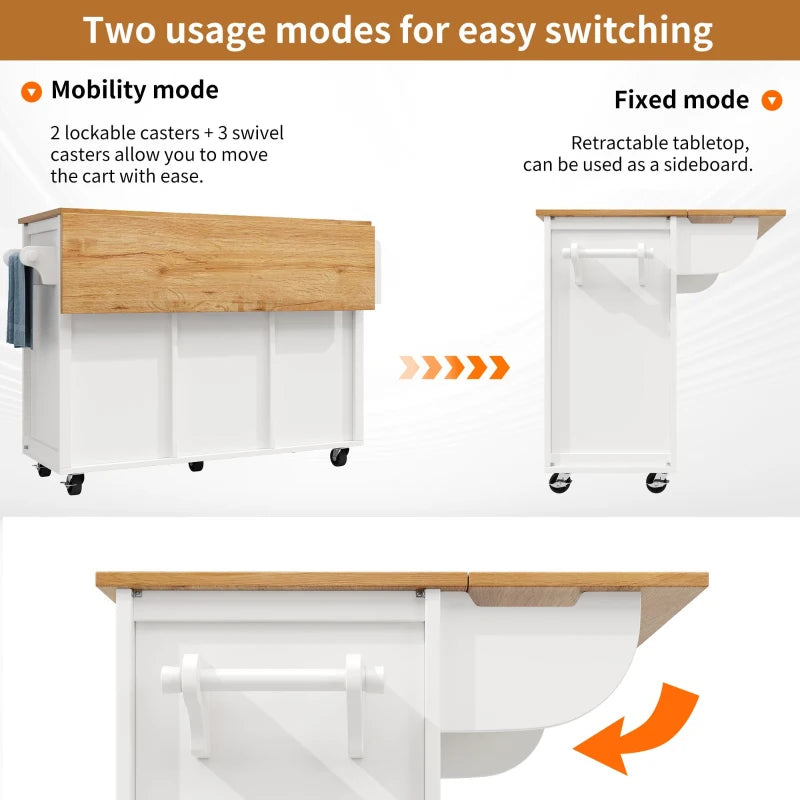 - Versatile Kitchen Island: This kitchen cart features a foldable work surface, easily converting from a compact storage unit to a large dining table, ideal for meeting diverse kitchen requirements.
