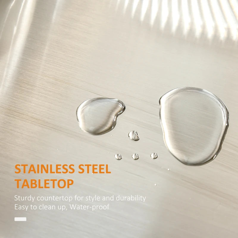 - Robust: The MDF construction ensures stability, complemented by a stainless steel countertop that provides a safe and reliable area for food preparation. The metal surface is also easy to clean.