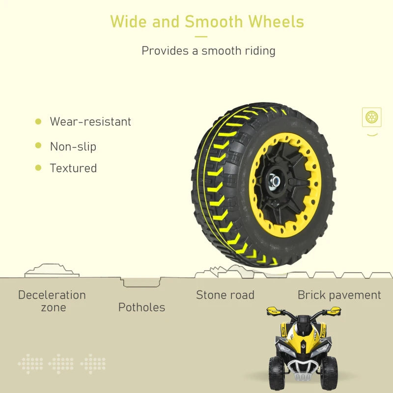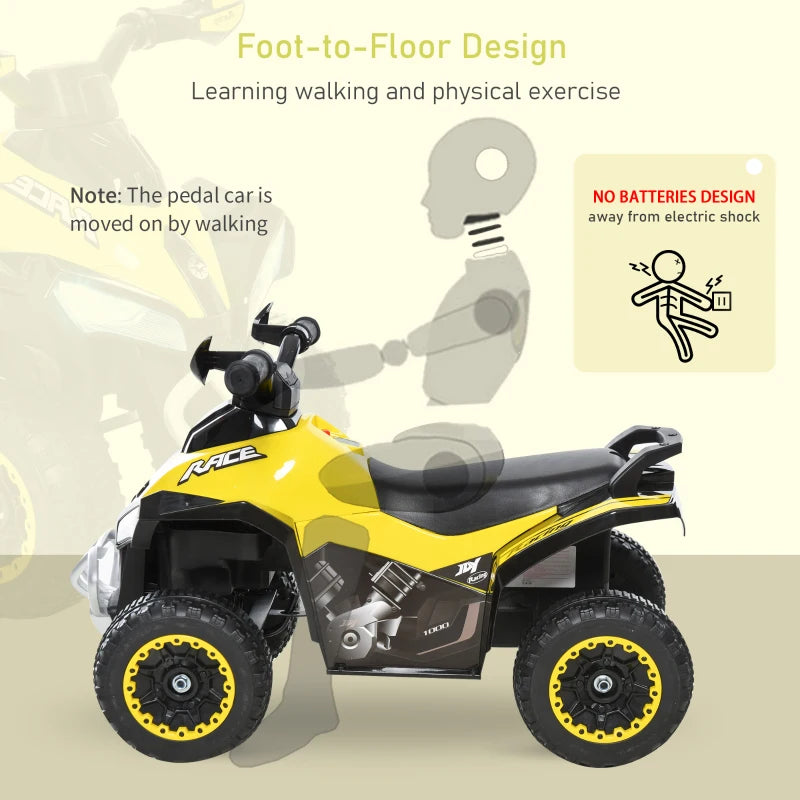 Enhance their outdoor playtime with this sliding ride-on car. Its bright color and robust quad bike design feature a spacious seat for comfort and safety, two large handlebars for easy steering, and four big wheels for smooth movement. The working lights and three music options add to the fun.